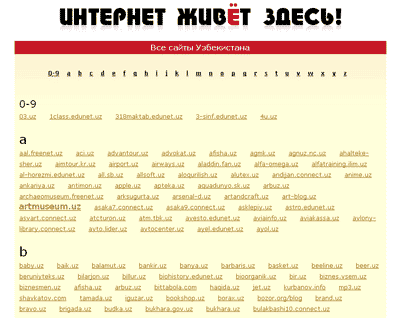 В местном сегменте сети Интернет – Узнете - также существуют специальные каталоги местных интернет-ресурсов. Сегодня я попытаюсь сделать их небольшой обзор. Причем будут рассматриваться только творения местных сайтостроителей, а не общерунетовские каталоги, отфильтрованные по региону Узбекистан.