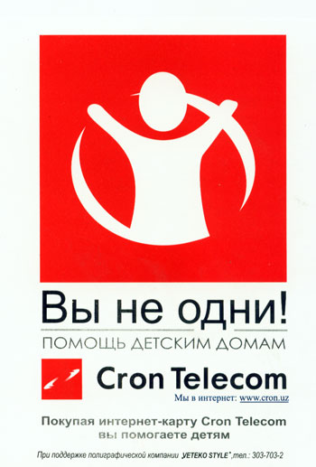 Но, с другой стороны, при относительно равном качестве предоставляемых услуг от местных провайдеров, предпочтительность в выборе интернет-карты возрастает — теперь Вы покупаете не только Интернет, но и помогаете детям (пусть и весьма опосредованно). Поэтому вместе с компанией «Крон Телеком» мы анонсируем развертывание программы помощи детским домам города Ташкента.