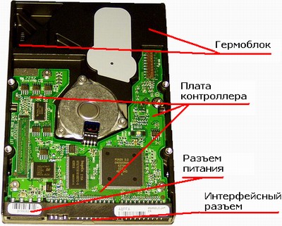 Конструкция большинства накопителей на жестких магнитных дисках (далее: накопитель) схожа. Типичный накопитель (см. рис.1) состоит из двух основных частей: гермоблока (также называемого камерой или, на жаргоне, «банкой») и платы контроллера.