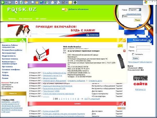 Рис 8. Torg.uz в IE. Недокрученные вип-объявления