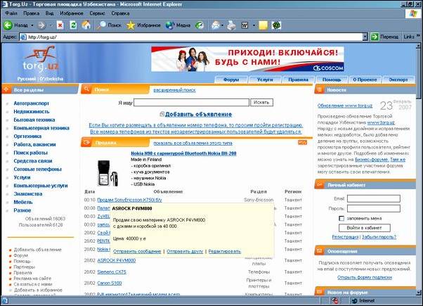 Рис 10. Torg.uz в Mozilla. Вип-объявление показывается на самом лучшем месте – прямо на логотипе torg.uz :)