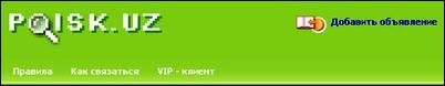 После предыдущей доски Poisk.uz просто восхищает лаконичностью главного меню. Правила, Контакты, Услуги, чуть поодаль Добавить объявление… Что еще нужно клиенту для полного счастья? ;-)
