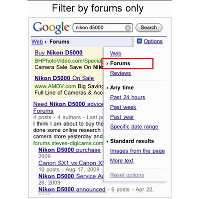 Компания Google включила в мобильные устройства функцию поиска, ранее доступную только для пользователей персональных компьютеров. Пока функция мобильного поиска будет доступна только для владельцев iPhone, Android и webOS. Данная функция предлагает значительно расширенные возможности поиска. Например, теперь можно осуществлять поиск только по форумам или только по отзывам товаров. Также можно задать временные рамки для поиска (например, за последние сутки или за последние семь дней). Чтобы испытать новую функцию, просто наберите в браузере вашего смартфона адрес сайта Google, после чего внесите необходимые настройки в разделе Опции. Что касается устройств на базе Windows Mobile, Symbian S6 и BlackBerry, перспективы появления в них функции расширенного поиска пока неясны.