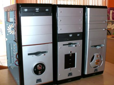 Сами поражаясь своей наглости, начинаем придираться к корпусам AV-TECH и жаловаться на их «как бы трехсотваттные» блоки питания. Нам тут же сообщают, что данные корпуса оснащены более-менее приличными блоками питания 400W, демонстрируют их вес и даже снимают крышку с одного блочка – пустых мест нет, все дроссели на месте. Кроме того, как выяснилось, можно заказать компьютер и в другом корпусе, например Delux – сборка занимает считанные минуты.