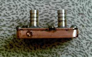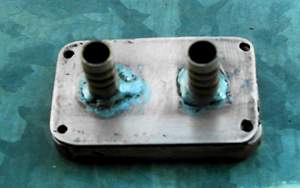 Проблема эта легко решается заливкой расплавленного припоя в эти самые отверстия с последующей полировкой поверхности ватерблока. Поэтому предупреждаю: если будете повторять операцию, подобную моей, то вырезать форму для ребер нужно пошире чем у меня, т.е. не менее 2-4 мм. Это единственный минус моей работы, который я обнаружил, но он легко лечится. Плюсы данного метода - легкость изготовления ватерблока. ЖЭКи есть везде, ручная обработка большого труда не составляет, а затраты ваши будут совсем небольшими. 1000 сумов за работу сварщику и 1 200 два латунных штуцера для крана. Всего – 2 200 сумов.