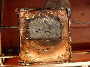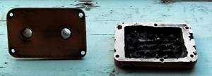 Крышка сделана из медной пластины толщиной 2 мм; в нее впаяны латунные трубки диаметром 10 мм (внешние) и 8 мм (внутренние).