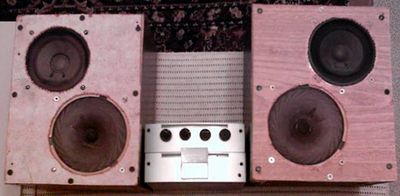 Колонки у меня также самодельные. Хочу заметить, что УНЧ подключается к выходу материнской платы стереокабелем. Самое приятное, что достаточно вытащить усилок и вернуть на место заглушки как компьютер приобретает первоначальный вид. Выходная мощность около 5Вт на канал, это не много, но мне, как выяснилось, хватает!!