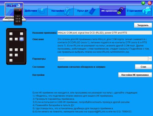 Далее нужно заиметь программку, которая будет принимать и обрабатывать сигналы от пульта. Для Win, на мой взгляд, самая лучшая программа – это IRLink. Скачать ее можно на сайте производителя, она бесплатная. Адрес странички для скачивания -