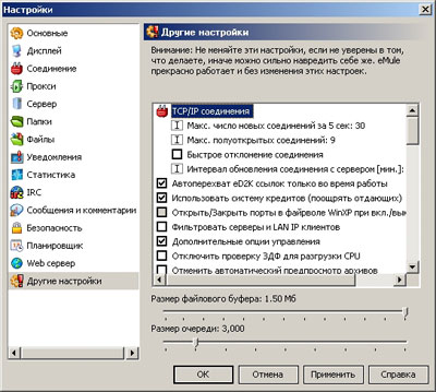 На этом первую часть своих советов по настройке eMule заканчиваю. Во второй части мы ознакомимся с другими пунктами меню и рассмотрим вопросы практической работы в donkey-сетях.