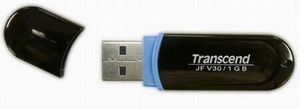 Первая модель - это Transcend V30. При весе всего в семь граммов этот умелец передает данные на скорости в 10 Mb/s и может служить загрузочным диском. Он определяется либо как USB-Zip, либо как USB-HDD. Предусмотрена парольная защита данных, поддерживаемая почти всеми операционными системами. В комплект ПО входит утилита, позволяющая использовать накопитель в качестве аппаратного ключа для разблокировки компьютера. Упаковано это чудо техники в привычный пластик, сам модуль - черного цвета со стандартным индикатором активности. Производитель гарантирует 10-летний срок сохранности ваших данных на носителе и цикл перезаписи в 1 миллион раз. Мне бы и половины этого хватило с лихвой, однако, как говорится, запас карман не тянет.