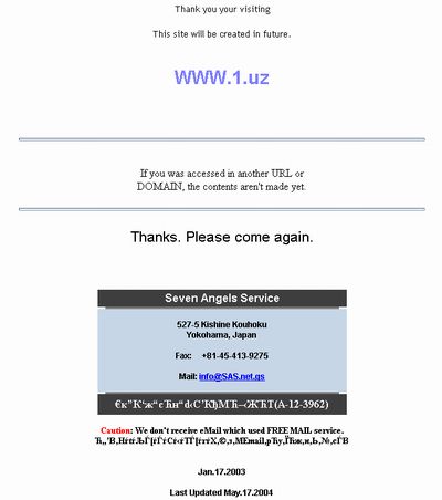 Поскольку жидкости вроде пива весьма способствуют нарушению координации различных участков тела, то неудивительно что вместо 911.uz вбил 1.uz. Даже под пивом я не стал бы этого делать сознательно, ибо давно и прочно усвоил, что все односимвольные имена в зоне .uz давно уже захвачены первыми киберсквоттерами УзНета – нехорошими японскими дядями, и сайты с этими именами выдают нечто подобное: