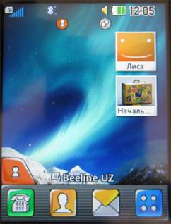 “Рабочий стол” телефона весьма смахивает на iPhone – девять квадратиков-виджетов в центре, четыре квадратные кнопки в нижнем ряду, мелочи вроде уровня сигнала, заряда батареи и часов – в верхнем. Экран можно сдвинуть в сторону и увидеть еще один экран (как выяснилось, предназначенный строго для избранных контактов).