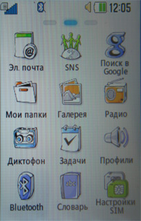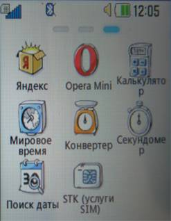 Меню телефона (да и виджеты рабочего стола) щедро набито ярлычками разнообразных интернет-сервисов. Здесь есть Mail.ru Агент, В Контакте, Одноклассники, Opera Mini.