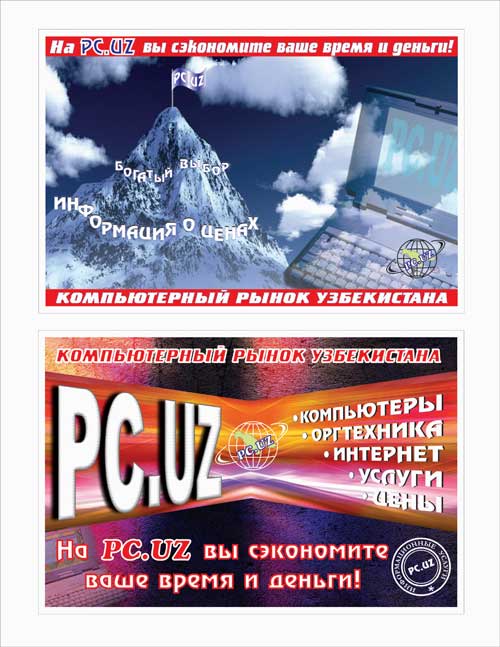 Пользуясь случаем, редакция PC.UZ благодарит дизайнеров Джасура Рахимова и Рустама Нура за решение представить на конкурс рекламные макеты для нашего сайта.