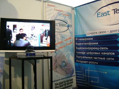 На стенде СП "East Telecom" были представлены достижения компании в области IP-телефонии, видеотелефонии, видеоконференцсвязи, Интернета и многие дополнительные услуги для малого и среднего бизнеса, а также для частных лиц. СП "East Telecom" - единственная в своем роде компания, предоставляющая широкий спектр услуг в области мультимедийной передачи данных.
