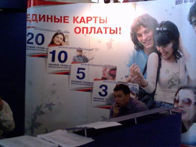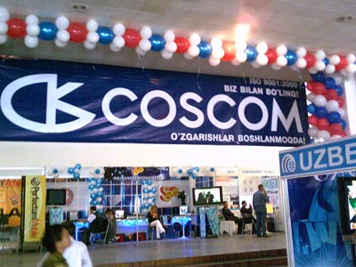 Основным и наиболее красочным стендом был стенд компании "COSCOM", которая активно привлекала всех посетителей, а каждому новому подключившемуся абоненту дарила красочные призы и подарки.