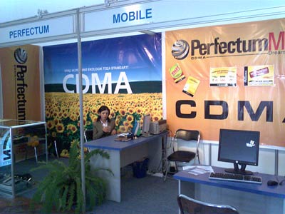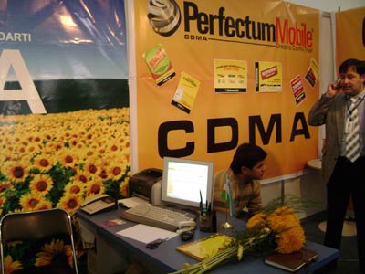 Стенд компании PerfectumMobile, оказывающей услуги связи в стандарте CDMA 2000 1X, выделялся своим красочным оформлением. Он был украшен подсолнухами и полевыми цветами, так как основным лозунгом компании является "CDMA - экологически чистый стандарт связи".