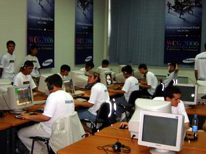 В этом году, как и в прошлые годы, финал национального чемпионата Узбекистана по компьютерным играм проводился в международном бизнес-центре на «счастливом» 13-м этаже. Здесь собрались сильнейшие геймеры со всей республики. От прошлогодних турниров этот отличался, в частности, наличием в составе игроков двух представительниц «слабого пола», которые показали неплохой класс игры в NFS. Most Wanted, правда в финал пока не попали. Надеюсь, в следующем чемпионате девушек будет больше, поскольку ходят слухи о женском игровом турнире в ближайшем будущем.