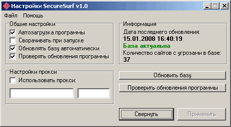 Настройки программы достаточно гибки и просты, и при необходимости пользователь может временно отключить определенные функции с тем, чтобы просмотреть содержимое сайта, который не рекомендован программой для просмотра.