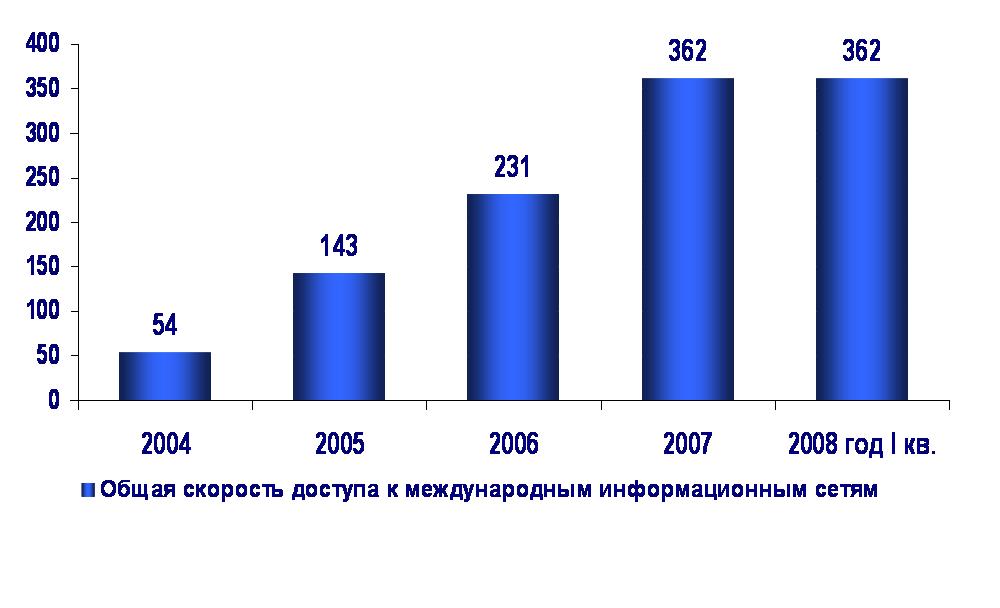 - общая скорость доступа к международным информационным сетям составляет 362 Мбит/с;