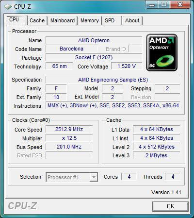 Нашими коллегами с портала были протестированы процессоры Quad-Core Opteron с частотами 2,0 ГГц и 2,5 ГГц. Причём официальным флагманом является как раз модель с 2,0 ГГц, а процессор 2,5 ГГц – инженерный образец, любезно предоставленный компанией AMD для тестирования.