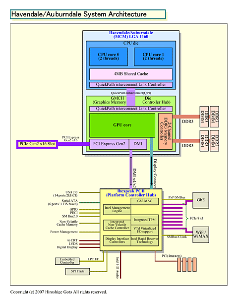 Итак, в 2009 году нас ожидает выход настольных и мобильных CPU Havendale и Auburndale с интегрированным видеоядром. Затем появится четырехъядерные 45-нм процессор Bloomfield, который будет построен на обновленной архитектуре Nehalem, но имеющий рад отличий. Среди которых отметим, возвращение технологии Hyper-Threading, интегрированный в процессор контроллер памяти и поддержку трехканальной памяти DDR3. При этом Bloomfield будет устанавливаться в 1366-контактный процессорный разъем, иметь 8 Мб L2 кэш и работать в паре с чипсетом Tylersburg (южный мост ICH10).