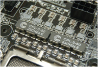 Производитель сохранил традиционное яркое красно-желтое оформление слотов расширения и строгий черный текстолит платы. Новинка выделяется среди продуктов от конкурентов наличием шестифазной системы питания процессора с цифровым управлением, которая, судя по заявлениям инженеров, способна обеспечить рабочий ток в районе 200 А без потери стабильности!