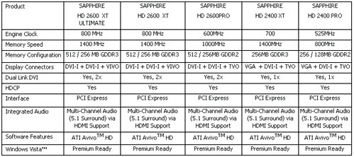 Все карты оснащены ATI UVD – унифицированным декодером для поддержки Blu-ray и HD DVD видеопотоков и аудио 5.1, а также двумя разъемами DVI.