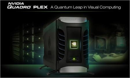 Компания nVidia достигла новых высот производительности при обработке визуальных данных путём объединения четырёх профессиональных видеокарт nVidia Quadro FX 5600 в одной серверной стойке стандарта 1U. На сегодняшний день это самое компактное и высокопроизводительное решение для графических рабочих станций. Буфер кадра сервера Quadro Plex Model S4, объединившего видеокарты, равен 6 Гб – по 1,5 Гб на каждый видеоадаптер – позволяет обрабатывать текстуры огромных размеров с полноэкранным сглаживанием.