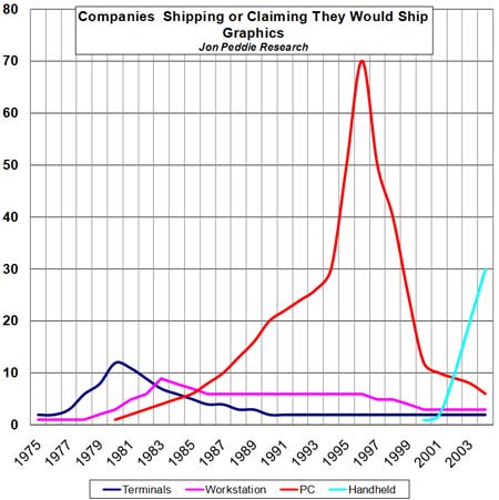 | Количество компаний, предлагающих графические ускорители (1975—2003 гг.) |