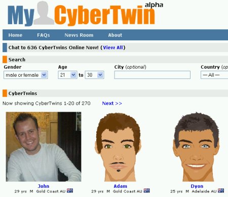 Программа MyCyberTwin способна создавать шаблонных двойников пяти типов. Например, добросердечные-умные или наглые-бесстыдные. Как вариант, можно пройти психологический тест и создать клона по своему собственному образцу. На сайте MyCyberTwin сидят и готовы поболтать 636 «кибер-двойников», в том числе и .
