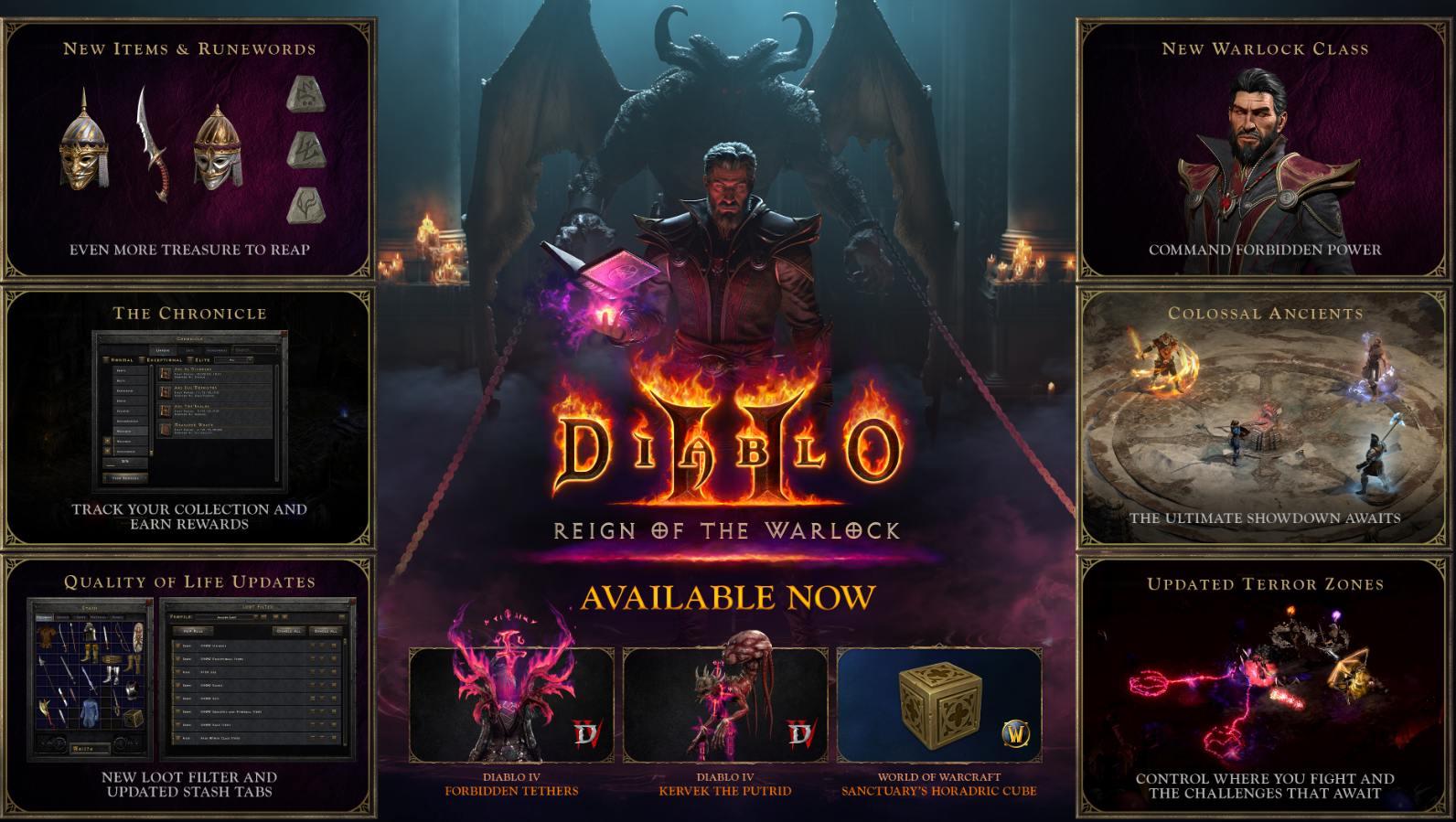 Blizzard Entertainment представила крупнейшее обновление за всю историю Diablo II: Resurrected — Reign of the Warlock, которое спустя четверть века добавит в игру новый класс, систему террор-зон с возможностью выбора локации, а также полную поддержку Steam и кроссплатформенные бонусы для Diablo IV и World of Warcraft.