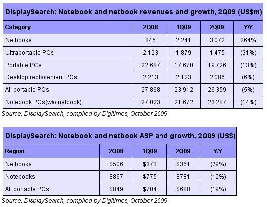 Средняя стоимость нетбуков по сравнению с прошлым годом упала почти на 30%, тогда как средняя стоимость ноутбуков уменьшилась всего на 10%. Тем не менее, прибыль от продажи нетбуков постоянно росла, что объясняется ростом их годовых продаж более чем на 360% .