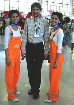 Итак, выставка вот-вот откроется, но первые посетители уже начали просачиваться. Наверное, нужно особое умение прорваться сквозь придирчивый фейс-контроль, который даже меня, с моей айтишной физиономией и удостоверением организации, экпонировавшейся на выставке, наотрез отказался пропустить, пока мне не вынесли бейдж участника. Честно говоря, странно было видеть бабулек с авоськами, «тинейджеров» с горящими глазами и без посетительских бейджей. Но это были первые ласточки – огромная толпа «пионэров» напирала на фейс-контроль, стараясь попасть в вожделенный павильон. Глядя на нее, я медленно расставался с концепцией «Айтишная выставка для айтишников» (ну хотя бы в первый день). И вот, наконец, народ хлынул. Чтобы освободить участников выставки от раздатки потребовалось минут 15-20. Наибольшая народная активность наблюдалась возле стендов, где «давали» что-либо материальное. Стенд МТС, где проводилась рекламная раздача маек, кепок и ручек брался штурмом. Пользовались успехом каталоги Софтлайна, газеты и еженедельники, календарики. Наконец, сметя все что можно, народ поуспокоился и начал обращать внимание собственно на экспозиции фирм.