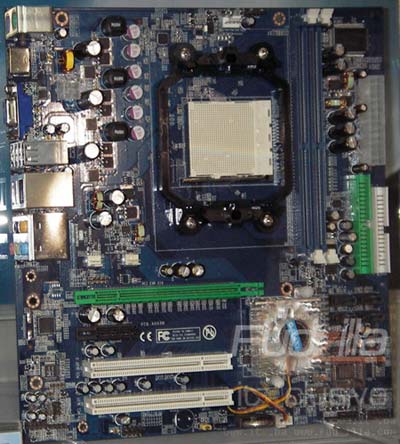 Производитель видеоадаптеров Galaxy решил и далее продвигаться на рынке материнских плат и представил на Computex 07 ряд моделей категории low-end и форм-фактора microATX, базирующихся на чипсетах NVidia для AMD AM2. Материнские платы используют наборы логики GeForce 7050PV/7025 и оснащены интегрированной графической подсистемой. Одна из плат имеет интерфейс HDMI, тогда как на другой только DVI. В остальном опции плат подобны: обе имеют активное охлаждение чипсета, выход D-sub, 7.1- канальный звук, 2 разъема DDR2, слот PCI Express x16, слот PCI Express x1, 2 слота PCI и 4 SATA-порта. Ниже фото Galaxy AN68M с HDMI: