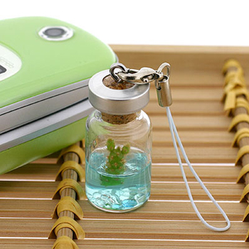 Украшения для излюбленного мобильного телефона сегодня предоставляются в огромнейшем ассортименте. Практически каждый из нас видел маленьких медведей, пикачу и святящиеся штучки, но все они скучны по сравнению с маленькой лабораторией в ваших руках. Компания Strapya-World предлагает специальные брелочки для ваших любимых гаджетов - небольшую растительную плантацию, посаженную в специальный прозрачный состав голубого или розового цвета. Все это прекрасное зрелище помещено в наглухо заглушенный флакон. Вам не придется поливать и удобрять маленького питомца, а остается всего лишь наблюдать за его естественным и в то же время магическим ростом. Безусловно вы сможете разбить и пересадить миниатюрное растение в горшочек с землей и наблюдать за его изменениями с подоконника вашего окна, но тогда вы лишите его возможности сопровождать вас в любое время и любом месте.