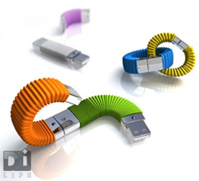 Во-первых, особенности материала позволяют сгибать их и скручивать без вреда для устройства. Мелочь, а приятно. И во-вторых, у каждой флешки есть по два разъема: "мама" и "папа", а значит, их можно объединять в "сеть" и подключать к ПК или лэптопу все вместе. Естественно, в этом случае объем памяти равняется общему объему всех USB-накопителей.