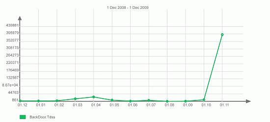 В ноябре 2009 года новые модификации BackDoor.Tdss распространились значительно шире. Сервер статистики компании "Доктор Веб" в прошедшем месяце зафиксировал около 400 000 определений данной вредоносной программы на компьютерах пользователей. До этого момента данная цифра редко поднималась выше 1 000 определений в месяц.